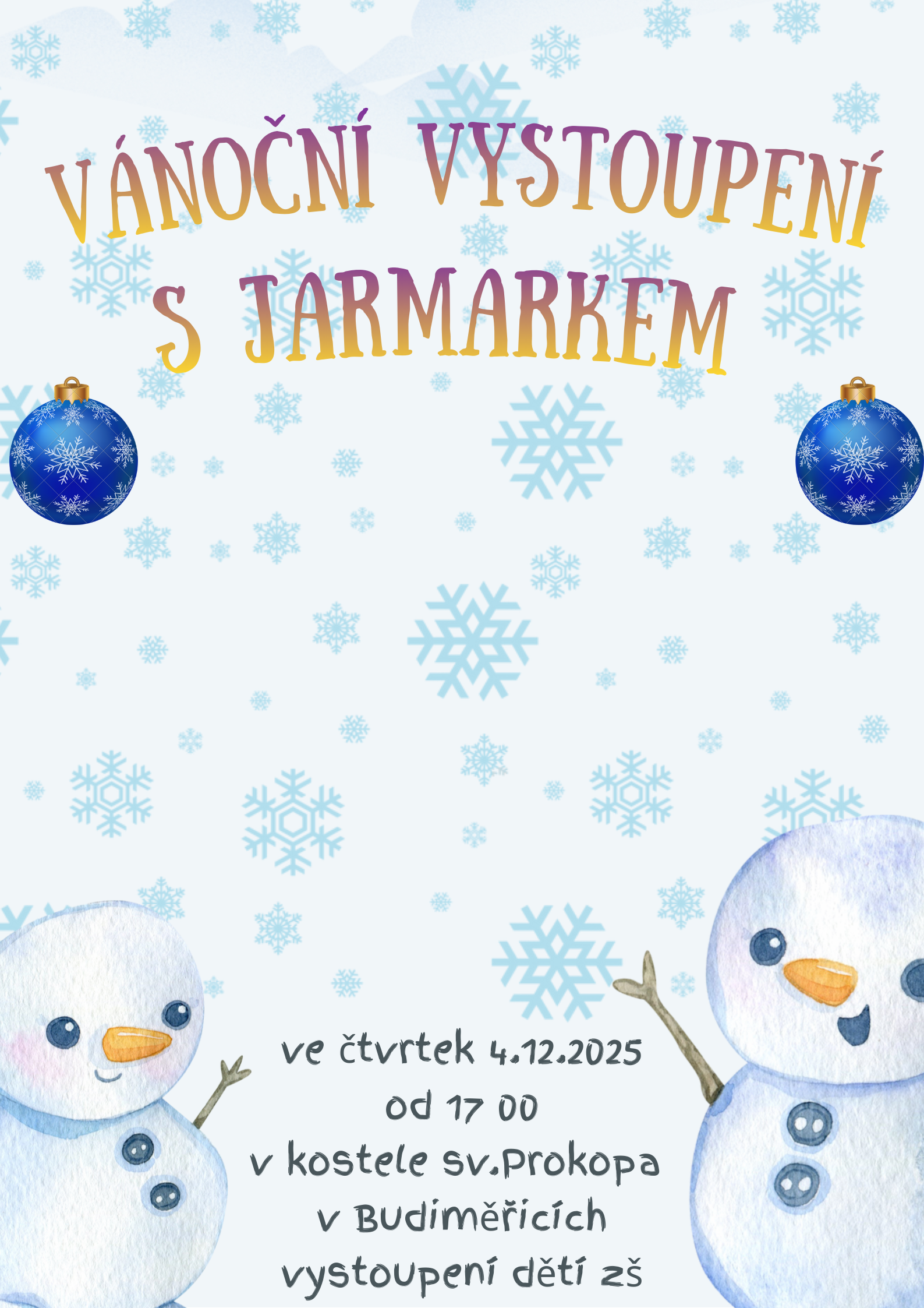 V kroužku školního studia jsme se tento týden pustili do první větší tvůrčí práce. Děti vytvořily plakáty k nadcházejícímu vystoupení žáků ZŠ a vánočnímu jarmarku v budiměřickém kostele sv. Prokopa. Pro většinu z nich to byla úplně první zkušenost s tvorbou plakátu a první seznámení s Canvou – a zvládly to výborně.